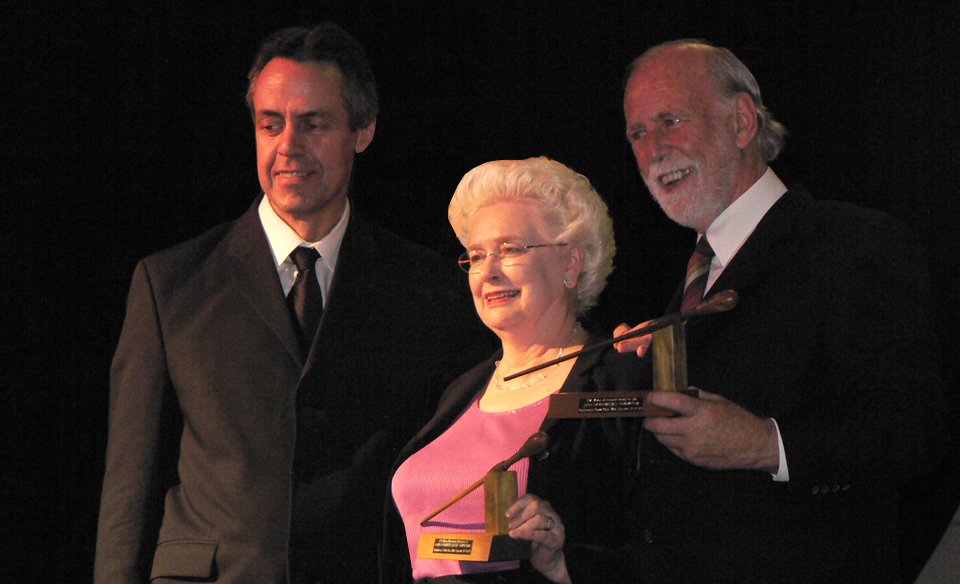 Conductors Joan Sommers and Gary Daverne being presented with speically commissioned Conductor Batons hand crafted