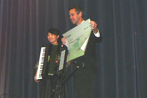 Winner of the CIA International Competition for Piano Accordion - He Qian (China) and the presentation of the $5,000.00 donated from the Dargaville Community the prize was made in honor of the late Ben Emmett from Dargaville |