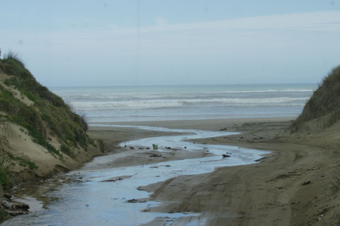 The Ripiro Beach (approx. 80 miles long) stretching from the Manganui Bluff in the north to the Pouto Peninsula in the south |