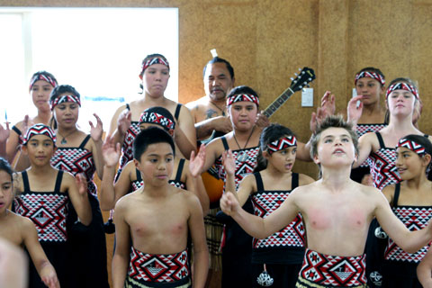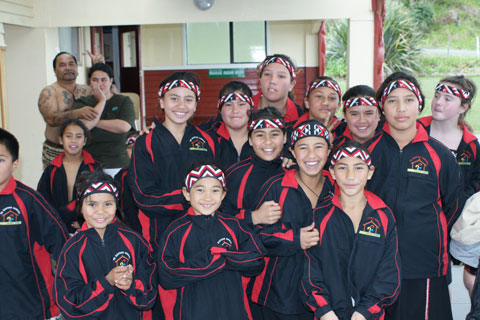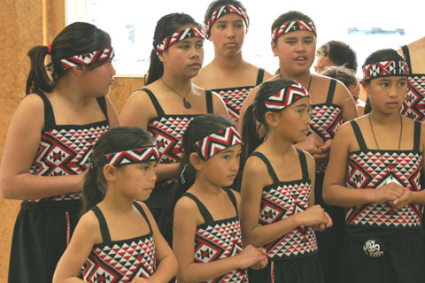 Above and Below: Te Kopuru Primary Shool Kapa Haka Group entertaining the CIA Guests |
