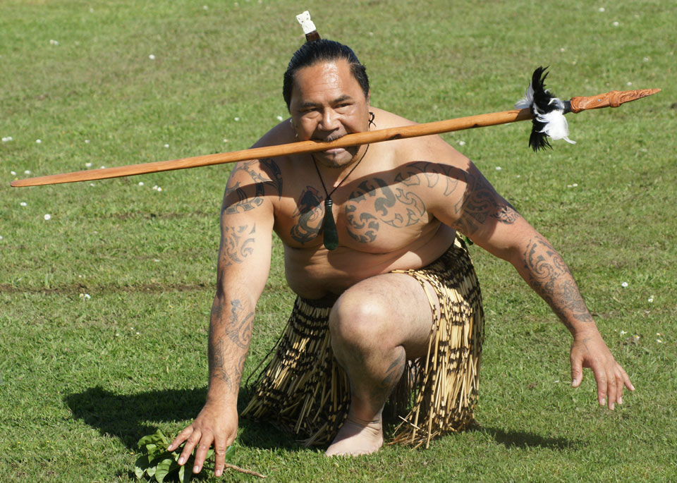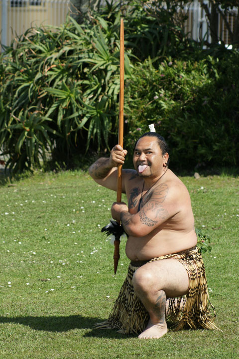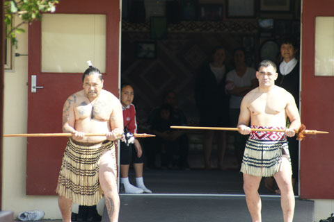 CIA Guests being welcomed onto the Oturei Marae with the traditional Maori challenge left: Pere Tahere and right Brendan Nathan |