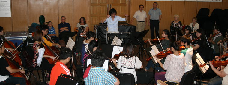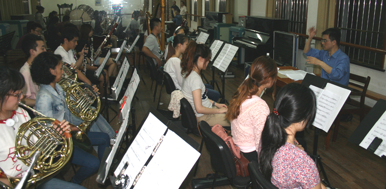 Qao Ping (Composer) rehearsing the Wind sections of the Orchestra