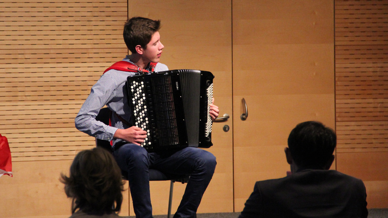 | The third venue of competition featured young accordionists in the Junior Intl. Comp. for Virtuoso Entertainment Music competition. Coming from as far afield as China, New Zealand, the USA and throughout Europe, the competition proved popular with the audience who heard each contestant perform as follows: |