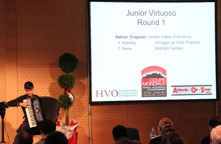 | As the contestants in the 67th Coupe Mondiale began their competition, the Junior Coupe Mondiale, attracting 25 young accordionists from around the world began their first round of competition. Each contestant was required to perform the following program: |