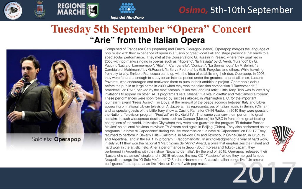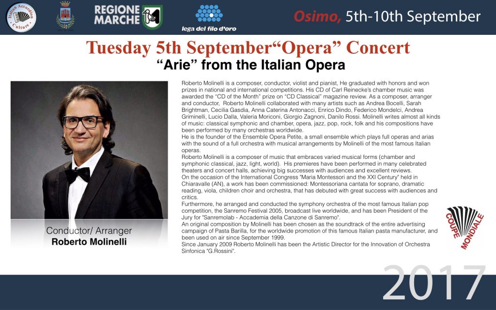Admission is free and tickets are available from the "Info Centre" at the Teatro Fenice from 2pm, 4th September on.