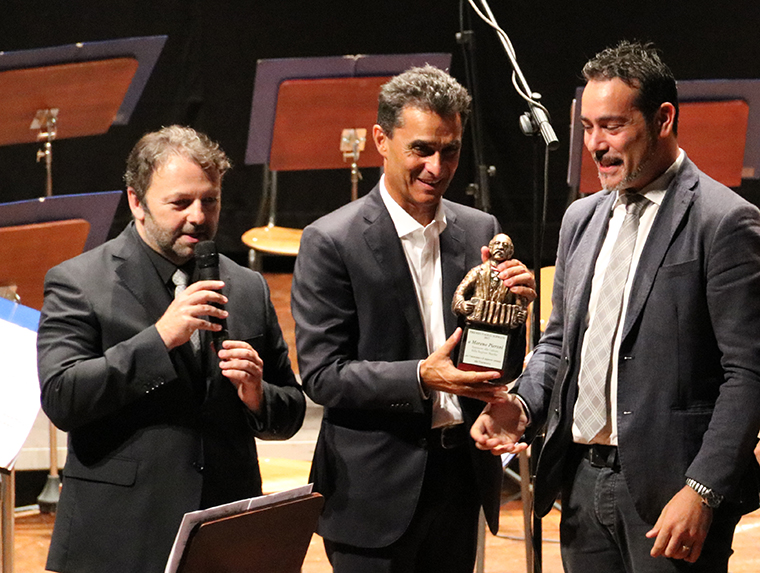 Mirco Patarini and Castelfidardo Mayor Roberto Ascani presenting the Paolo Soprani Award
