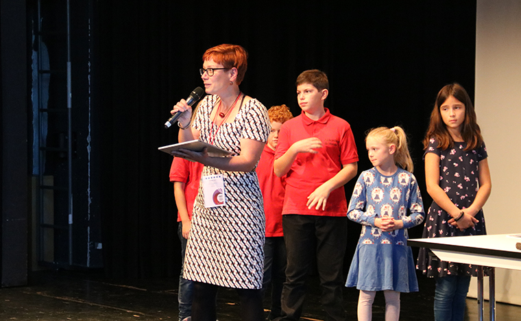 Yvonne Glur (President of the host organization accordeon.ch) and her young assistants,