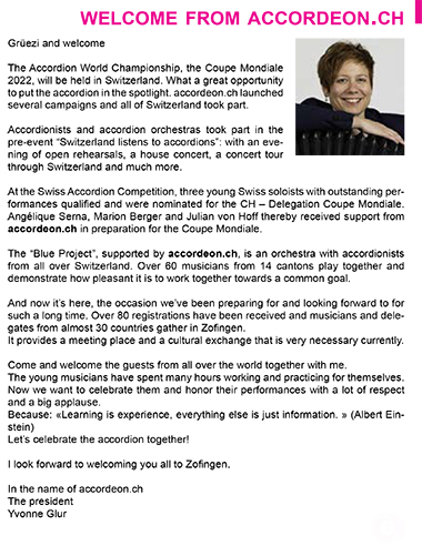 Yvonne Glur - President of the Swiss host organization accordeon.ch