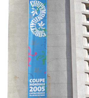 Giant Poster adorns the side of the Cine Teatro advertising the 2005 Coupe Mondiale. |