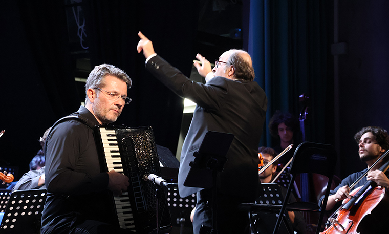 Giorgio Dellarole (accordion) with the Calabria Symphony Orchestra under the direction of