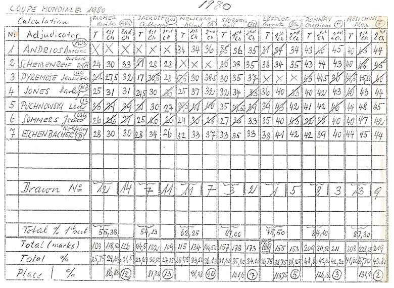 Members of the International Jury panel in 1980 were, Antoine Andrios (Australia), Dr. Herbert Scheibenreif (Austria), Jeanette Dyremose (Denmark), Harley Jones (New Zealand), Lech Puchnowski (Poland), Joan Sommers (USA) and Wolfgang Eschenbacher (West Germany).