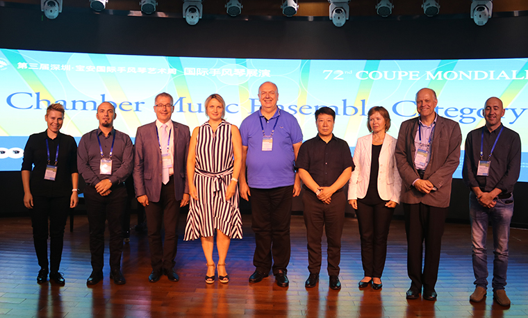 Championships in Washington D.C., drawing worldwide attention, and held a special concert at the Kennedy Center for the Performing Arts. In August 2008, he held a special concert of the accordion orchestra at the Concert Hall of the National Center for the Performing Arts of China. In October 2011, at the invitation of the organizing committee of the 64 Coupe Mondiale, he conducted the “World Accordion Orchestra” together with the famous American accordion educator and conductor - Professor Joan C. Sommers. |